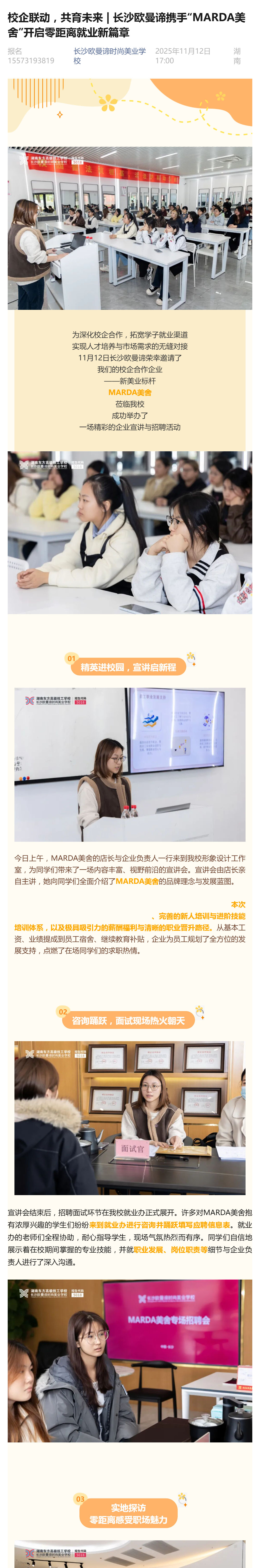 校企联动,共育未来 | 长沙欧曼谛携手“MARDA美舍”开启零距离就业新篇章